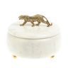 Шкатулка круглая "Гепард" из белого мрамора 15х15х12 см